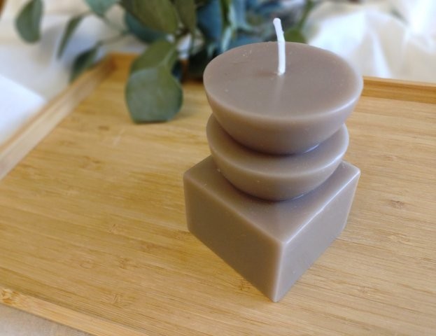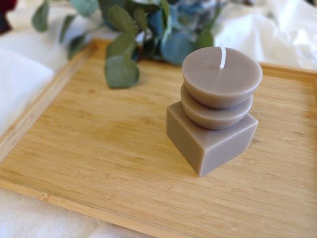 個性的なフォルムがかわいい、ベージュの幾何学キャンドルもゲットしました。